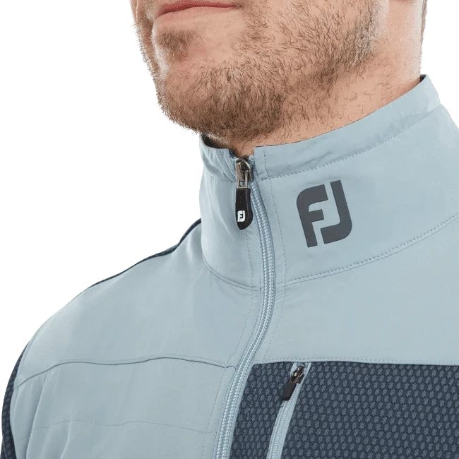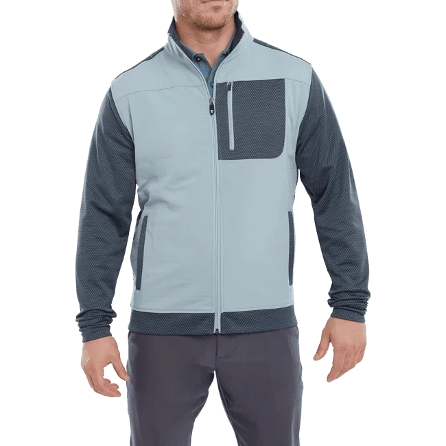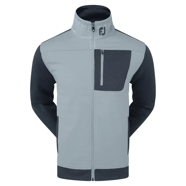 Heat up your game in the FootJoy ThermoSeries Hybrid Golf Jacket. The brushed back jacquard knit body and sleeves, lightweight woven quilted on front panels and collar, adjustable collar, and open hand pockets are engineered to adapt as the weather changes so you can look, feel, and play your best in any conditions.