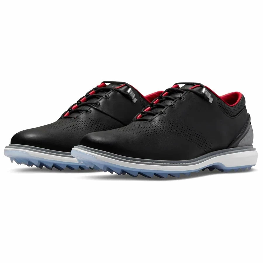 As a request from Michael Jordan himself the Nike Jordan ADG 4 Golf Shoes incorporates an incredible, classic silhouette with retro Jordan flavour. Supple, full-grain leather boasts the iconic elephant print on the heel with the iconic Jordan logo contrasted in black.