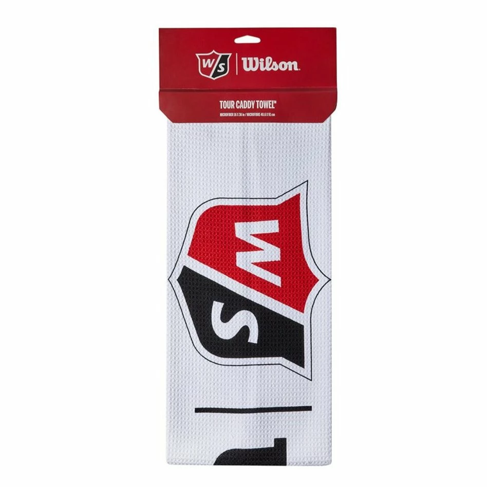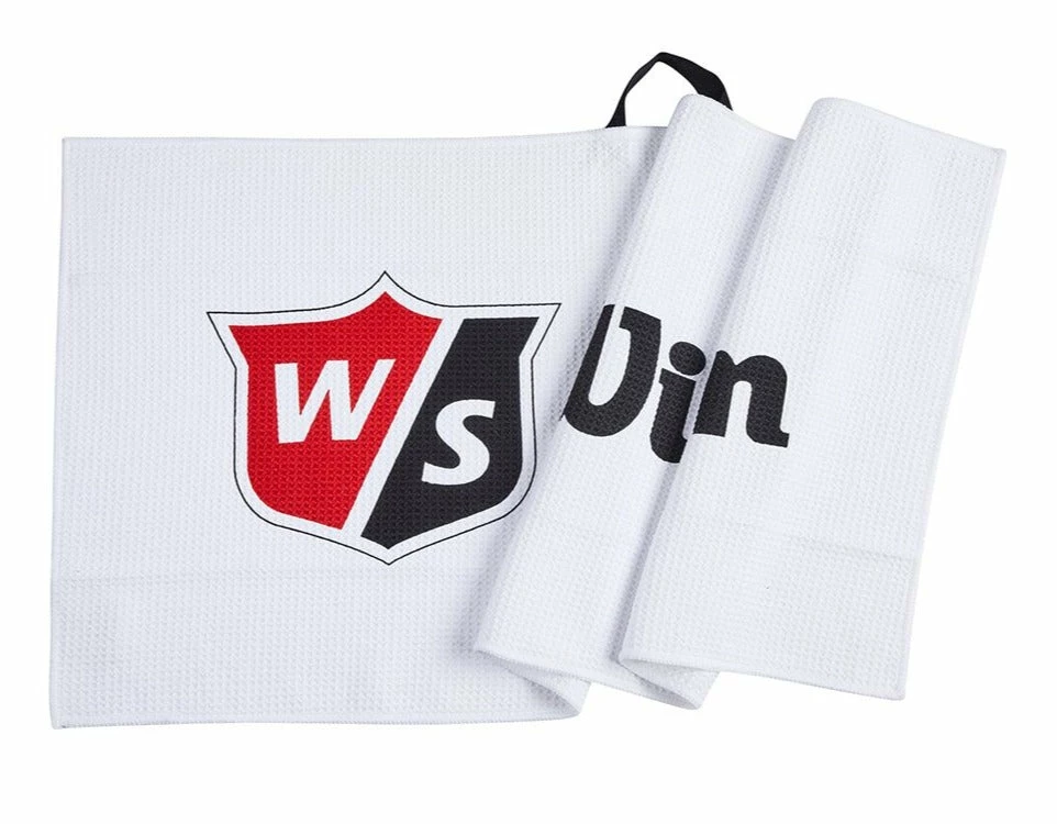 The Wilson Tour Golf Towel is a large microfibre golf towel that comes in bright white with Wilson Staff branding for an authentic tour look that goes well with any bag.
